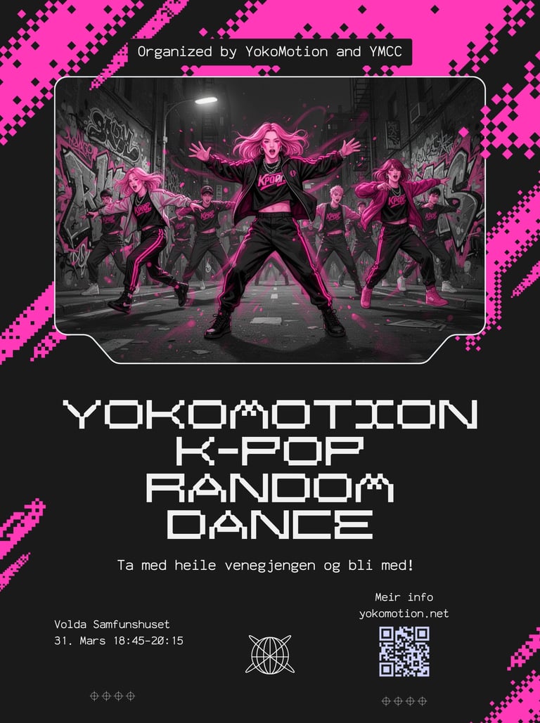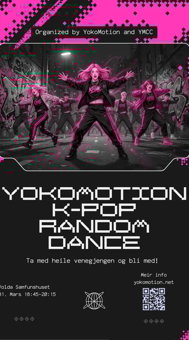 Den 31. mars kl. 18:45–20:15 vil YMCC, i samarbeid med YokoMotion, arrangere vår aller første K-pop Random Dance. Ta med venene dine og kom og dans med oss. Tilbodet er ope for alle aldrar og nivå, og sjølvsagt heilt gratis.